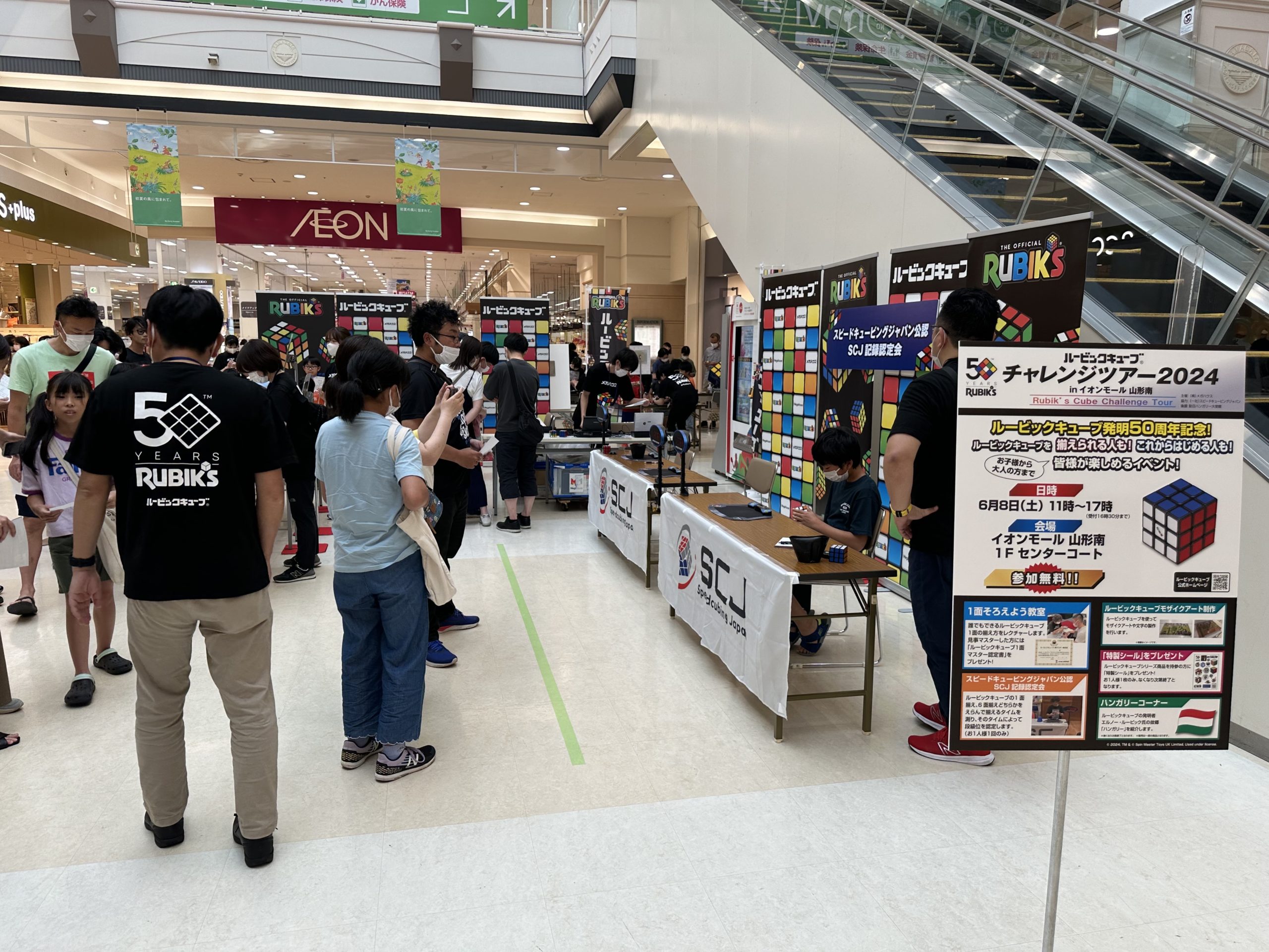 2024.06.14 活動報告 2024年6月8日(土) イオンモール山形南センターコートで行われた、 『ルービックキューブチャレンジツアー2024inイオンモール山形南』で、運営および設営撤去作業を担当させて頂きました! Prev Next
